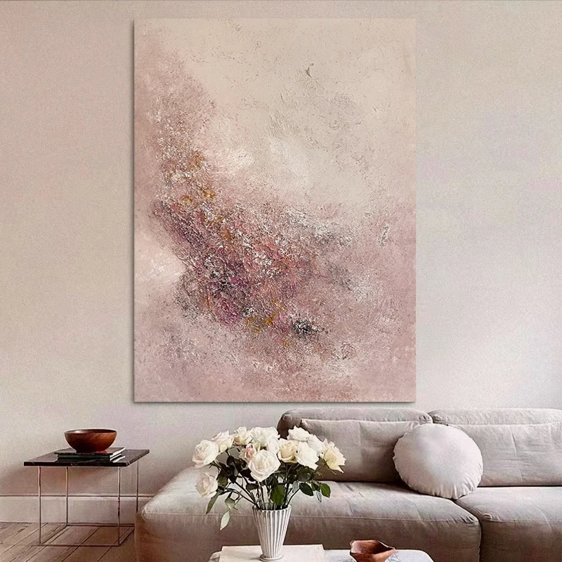 MUMOオリジナル手描き油絵《茉夏》- リビングにぴったりの抽象アート、侘寂の美を感じるレストラン向けテクスチャーアート!あなたの空間を洗練された雰囲気で彩ります。