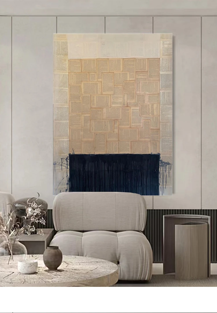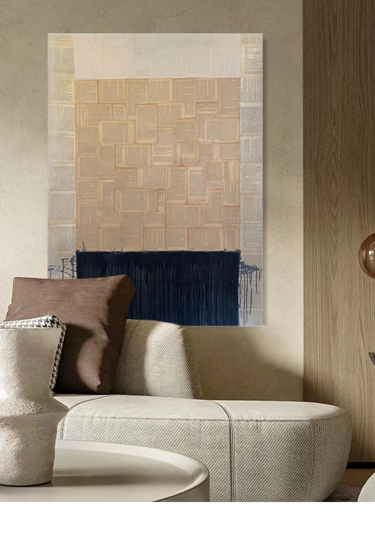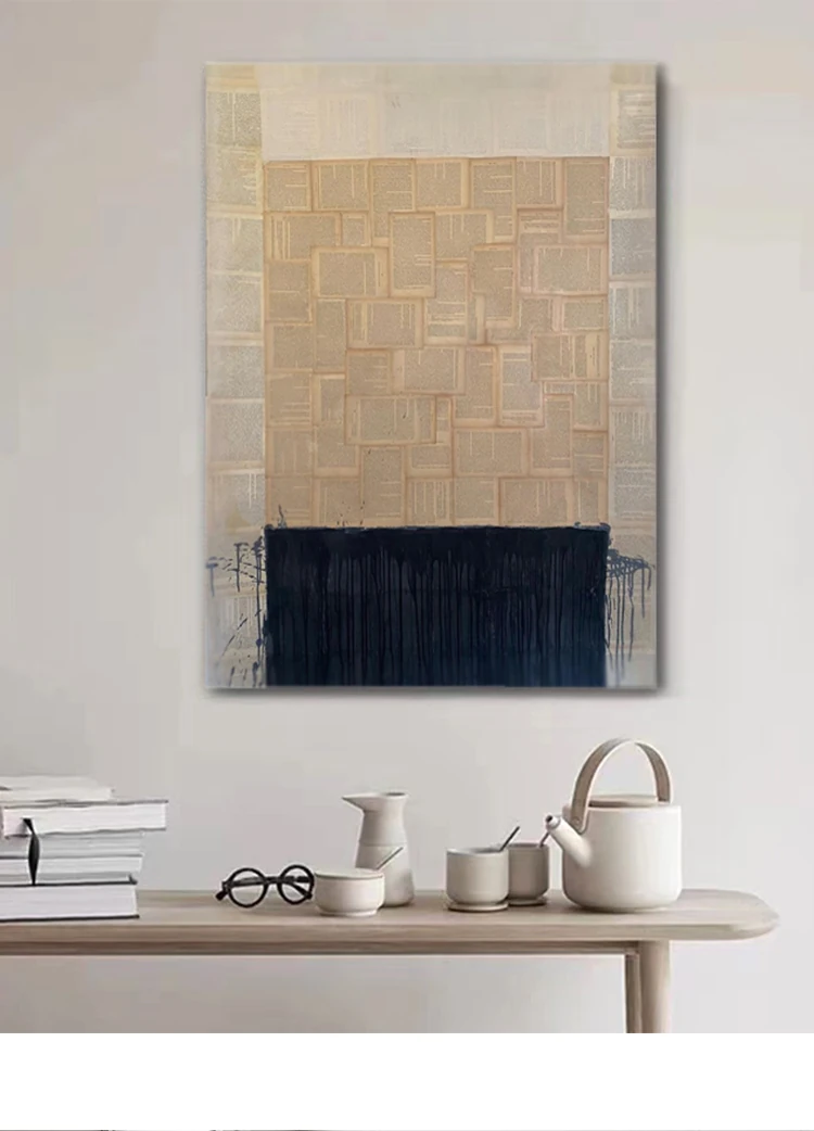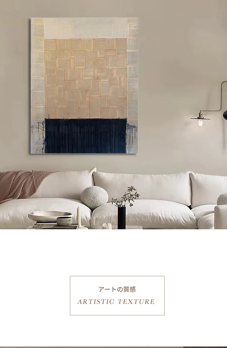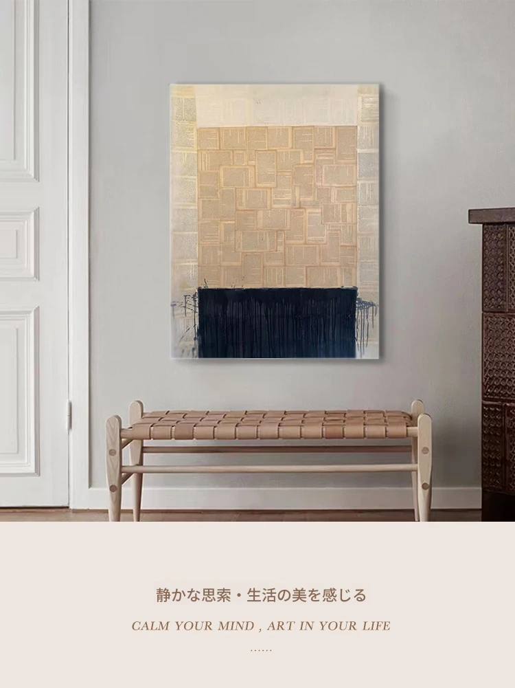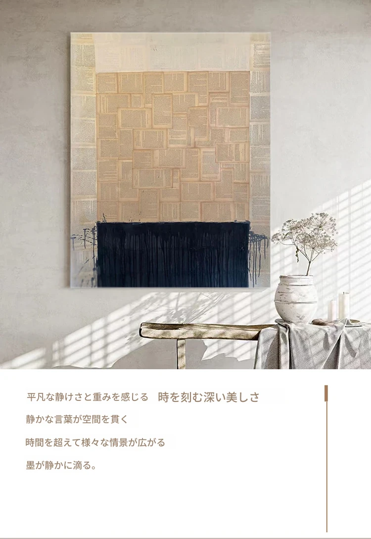MUMOオリジナル手描き「海の隣」侘び寂び風インテリアアート - 抽象的なデザインで心安らぐ空間を演出するリビング用掛け画!