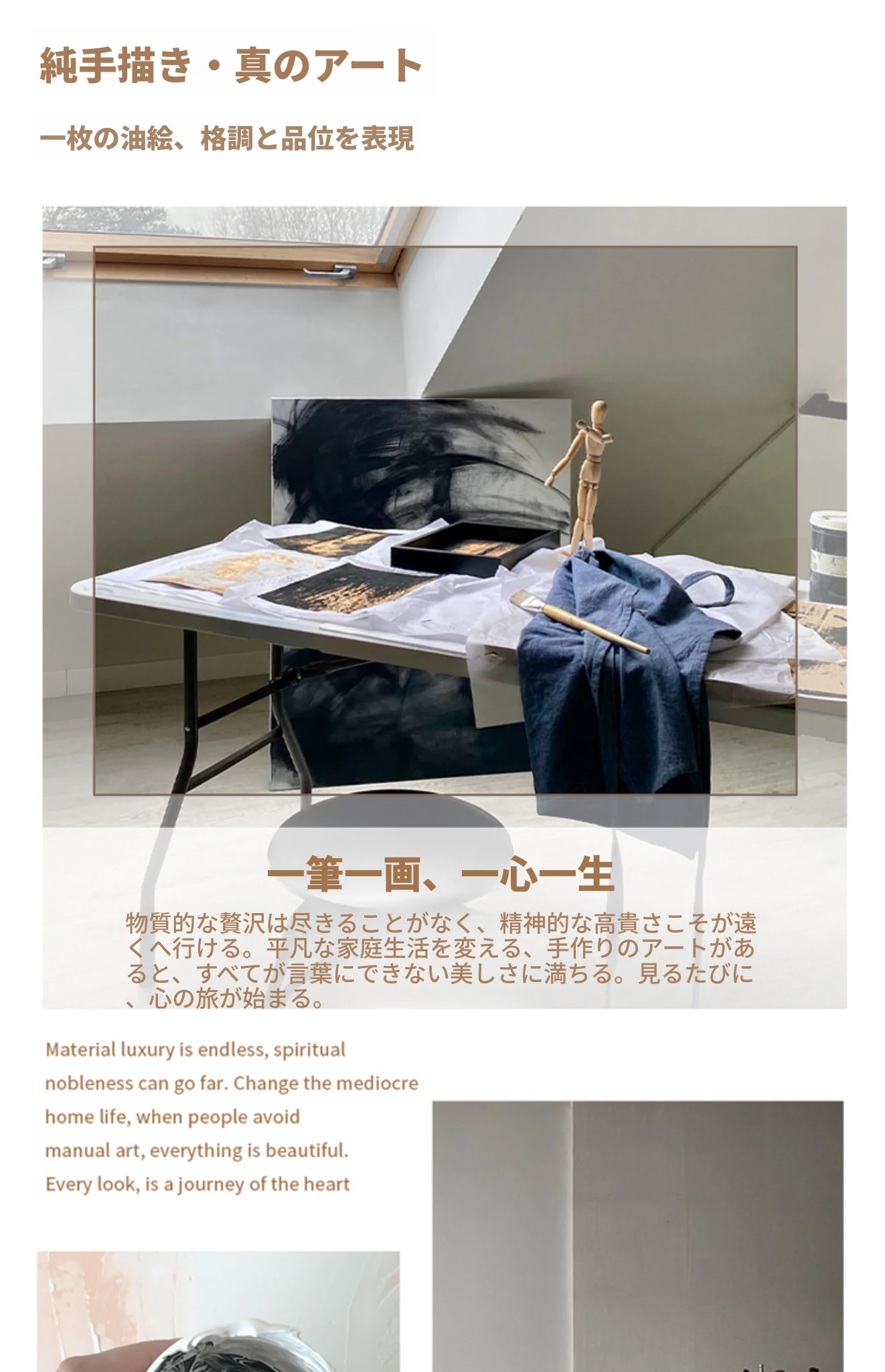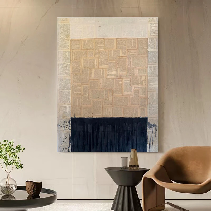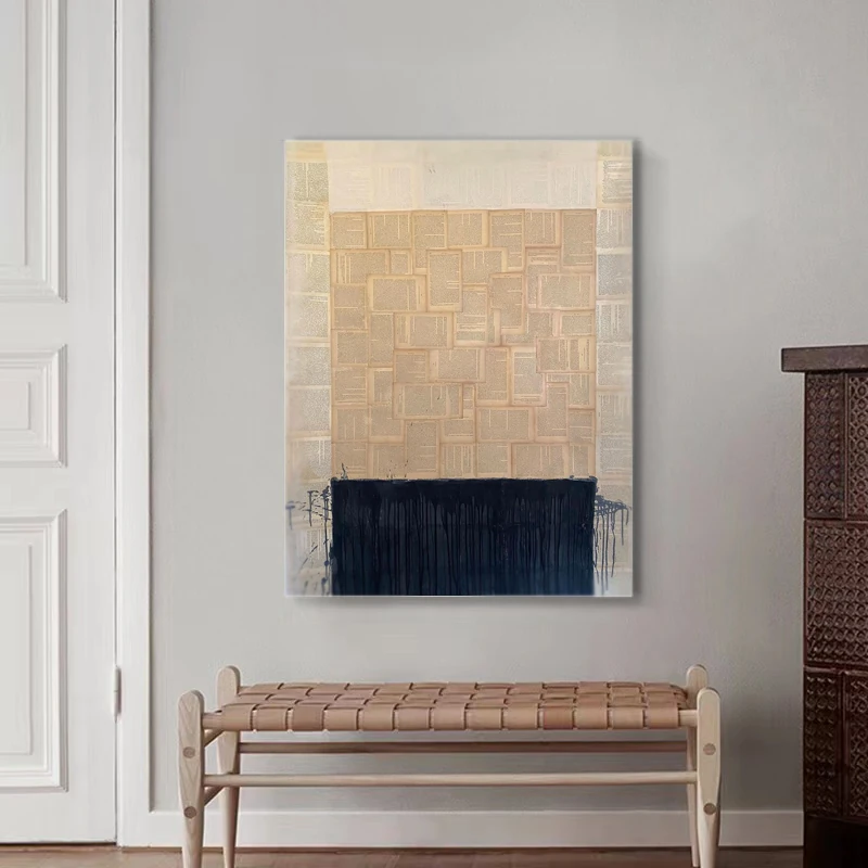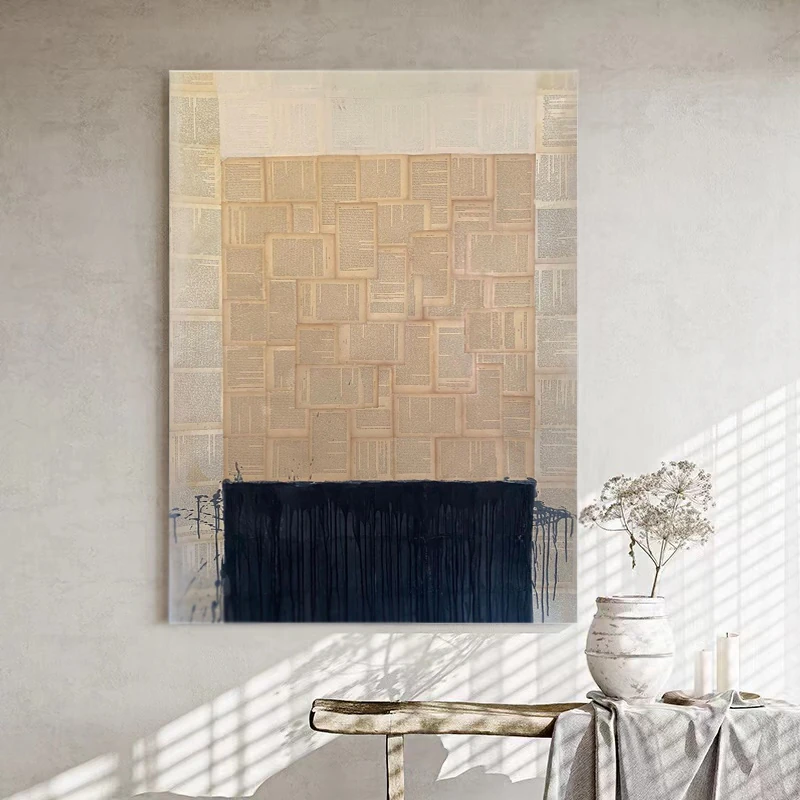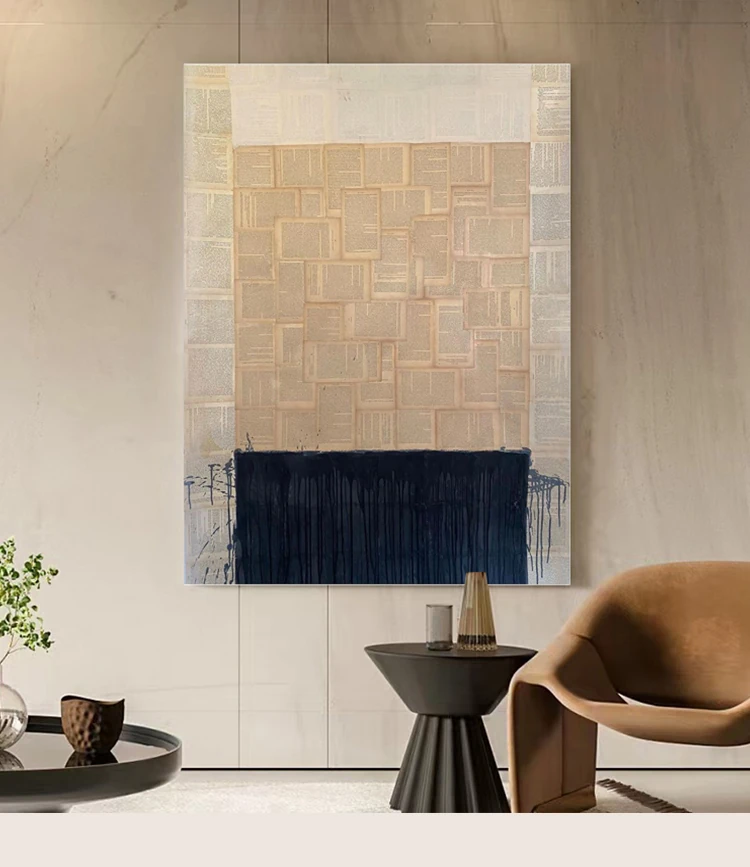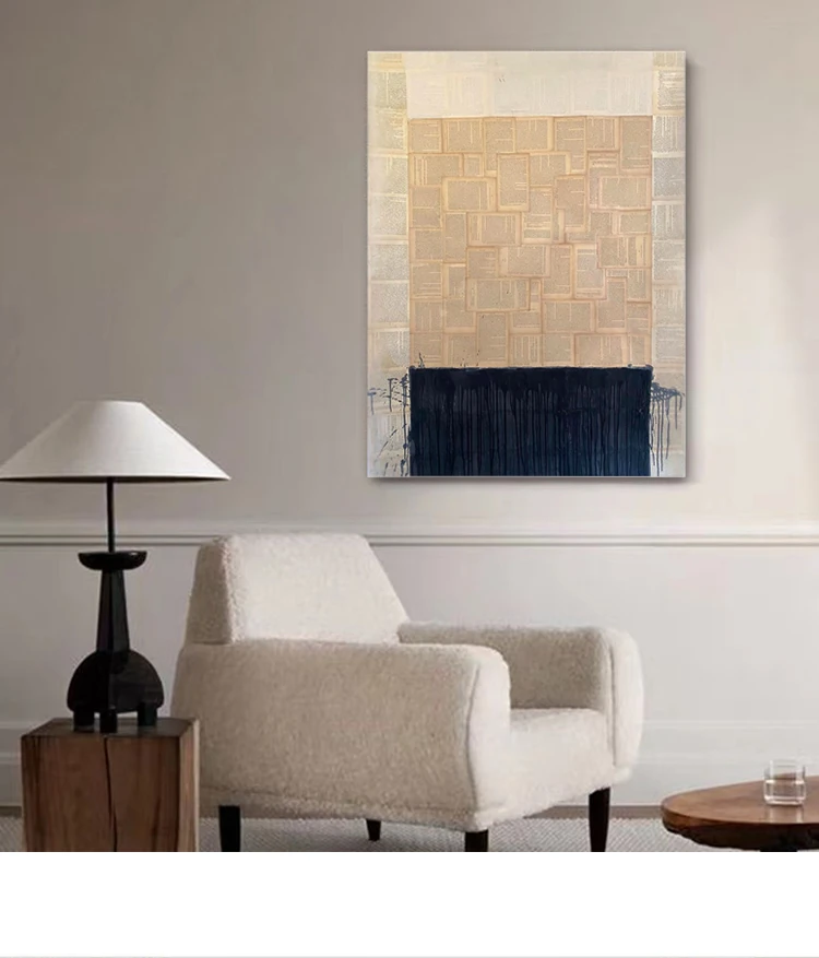 MUMOオリジナル手描き「海の隣」侘び寂び風インテリアアート - 抽象的なデザインで心安らぐ空間を演出するリビング用掛け画!
