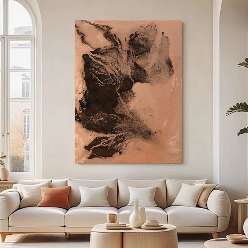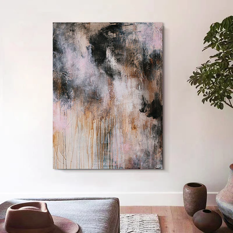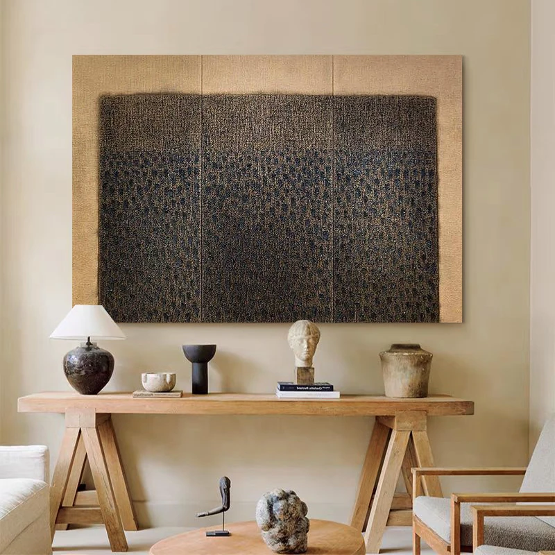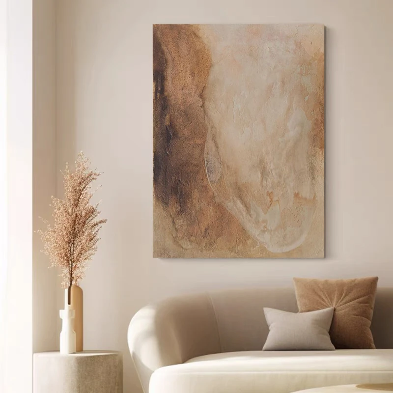 MUMO Hand-painted Oil Painting "Falling Dust" - Wabi-Sabi Style Textured Wall Art for Elegant Living Rooms and 3D Decorative Artwork for Dining Areas.