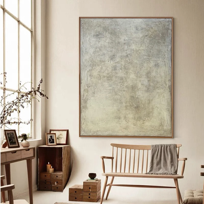 MUMO Original Hand-Painted Oil Painting "Simple Imprint" - Elegant Wabi-Sabi Style Abstract Wall Art for Living Room and 3D Entrance Decor