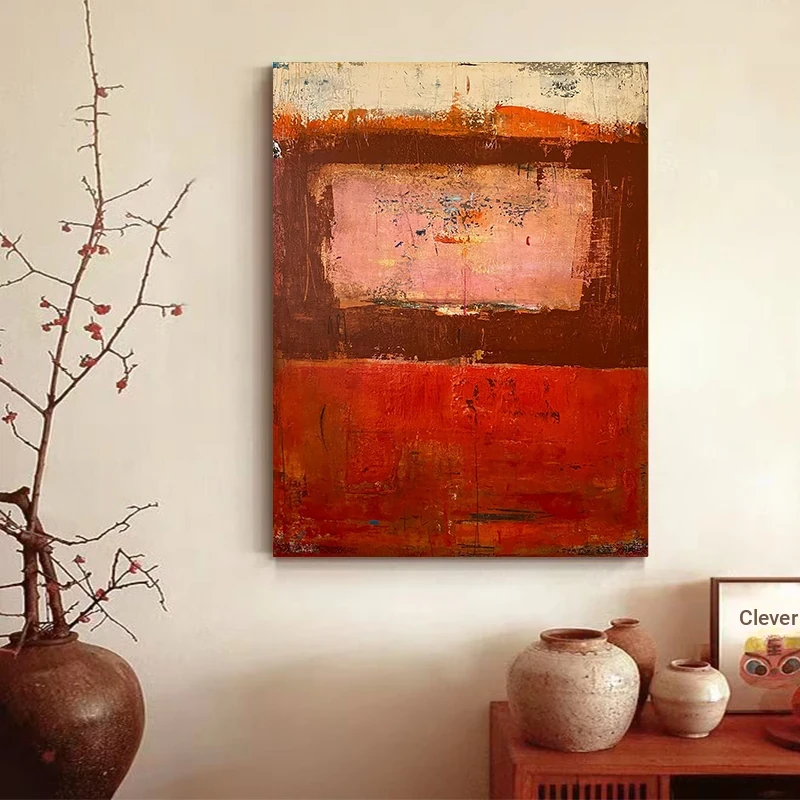 MUMO Hand-Painted Oil Painting "Scorching Light" - Wabi-Sabi Abstract Wall Art for Living Room and Entryway Decor