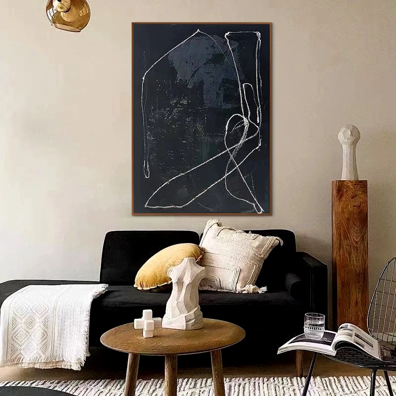 MUMO Hand-Painted Oil Painting "Fleeting Depths" – Wabi-Sabi Style Abstract Wall Art for Entryway, Living Room, and Dining Room Décor