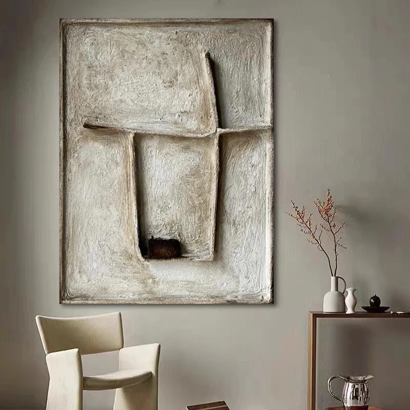 MUMO Original Hand-Painted "Quiet Essence" Abstract Wall Art - Wabi-Sabi Style Decorative 3D Oil Painting for Living Room and Entrance
