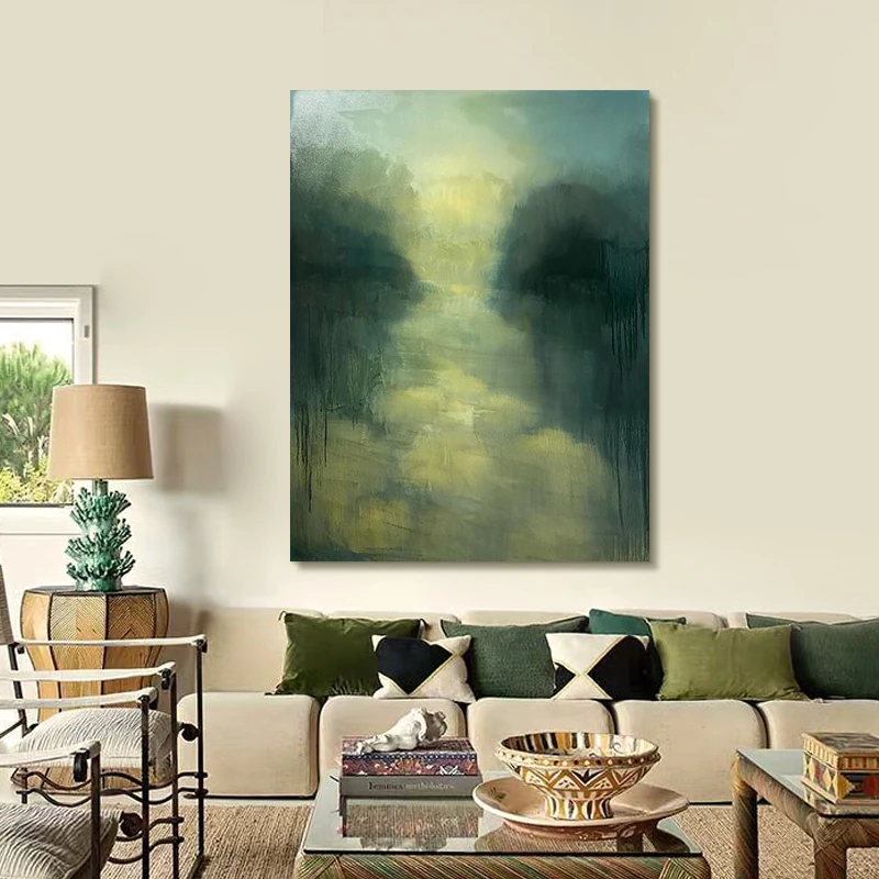 MUMO Original Hand-Painted "Lake Reflection" Wabi-Sabi Style Abstract Art Oil Painting - Textured Wall Decor for Dining Room and Living Room
