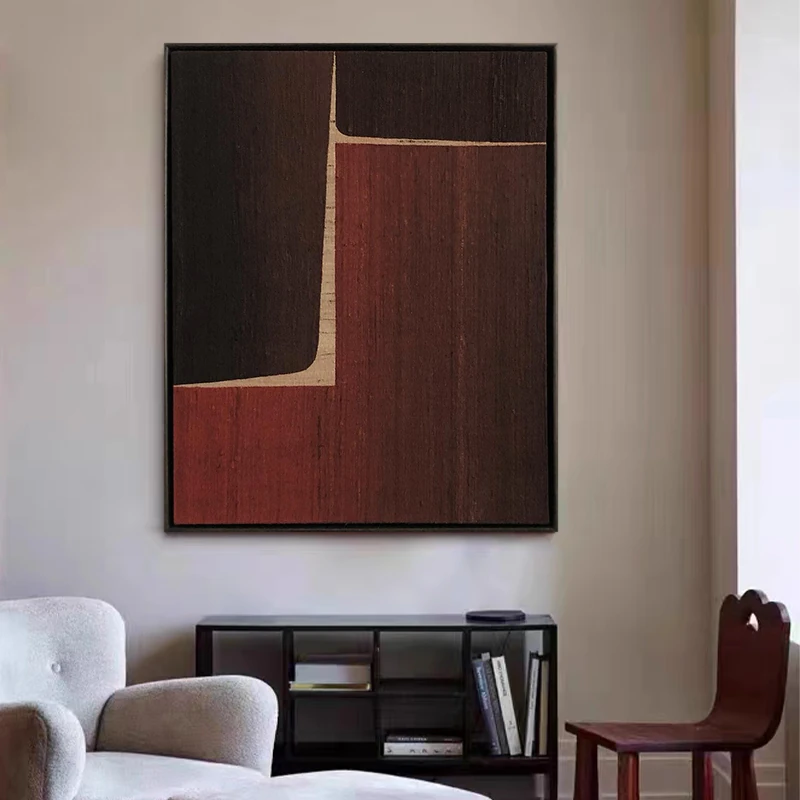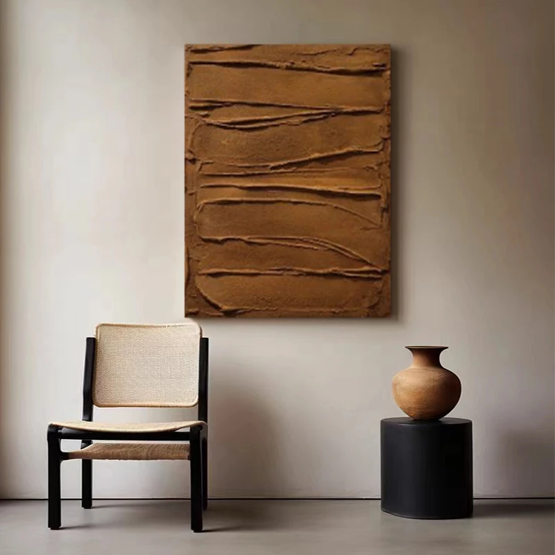 MUMO.オリジナル手描き《芳醇な香り》わびさびスタイルのリビング装飾テクスチャーオイルペイント抽象アート掛け画 - あなたの空間に洗練された美を添える一品!