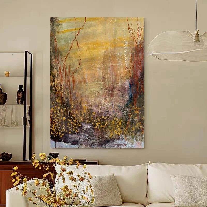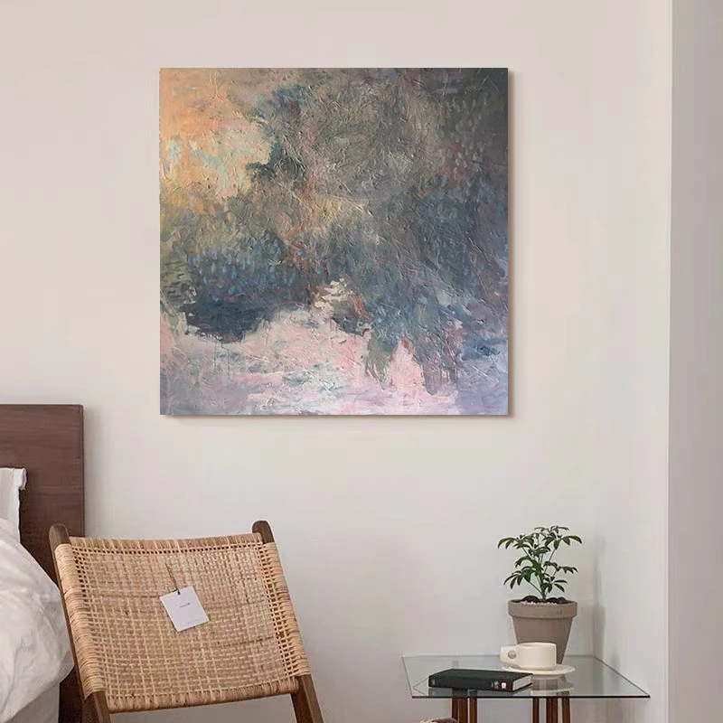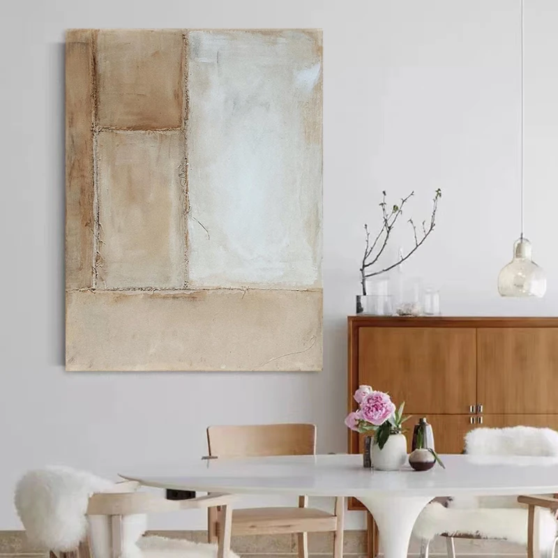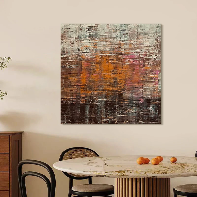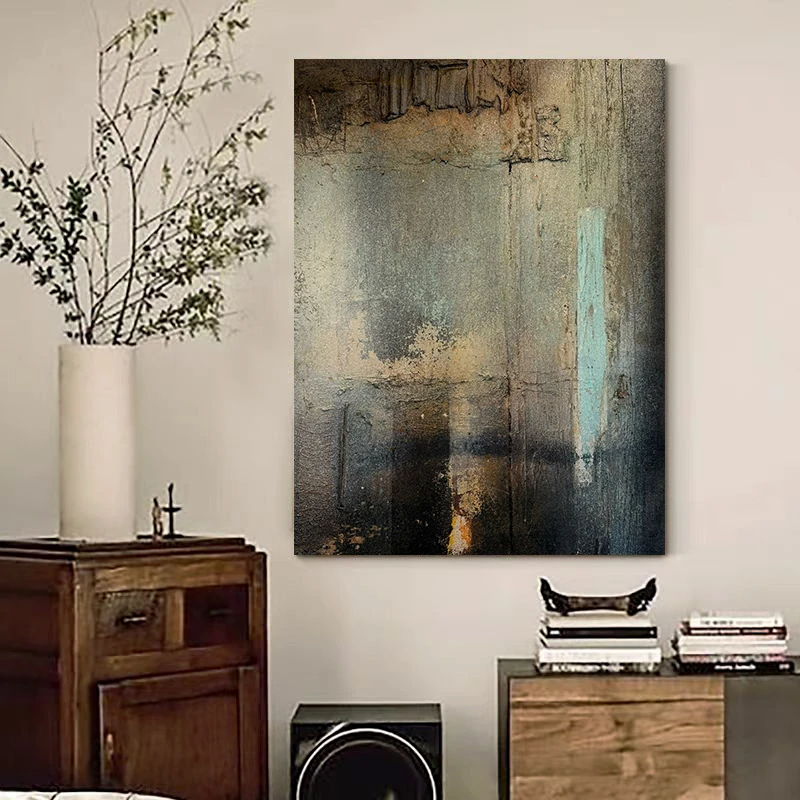 MUMOオリジナル手描き『紛華不染』侘び寂び風リビング装飾油絵|手作り抽象アートで、心を癒すダイニング空間を演出!