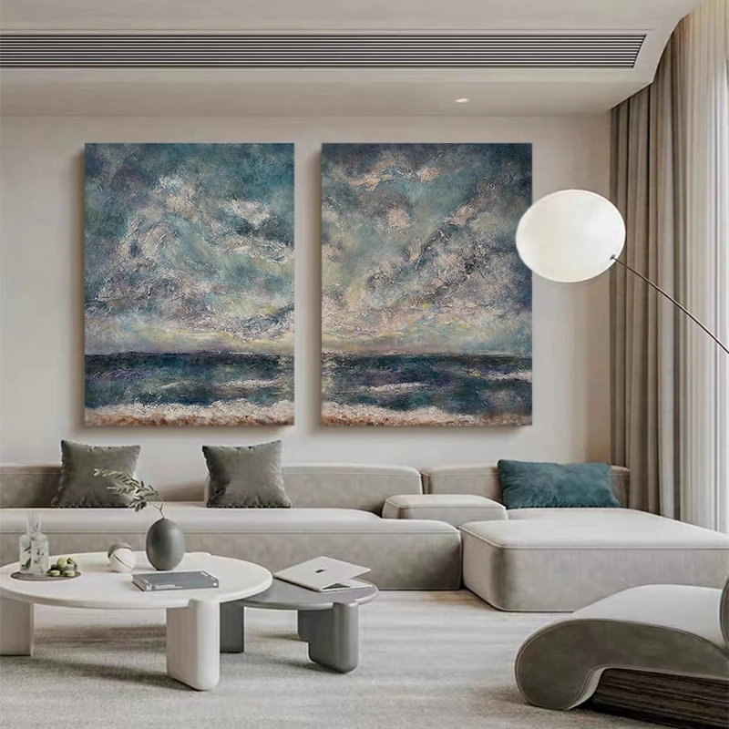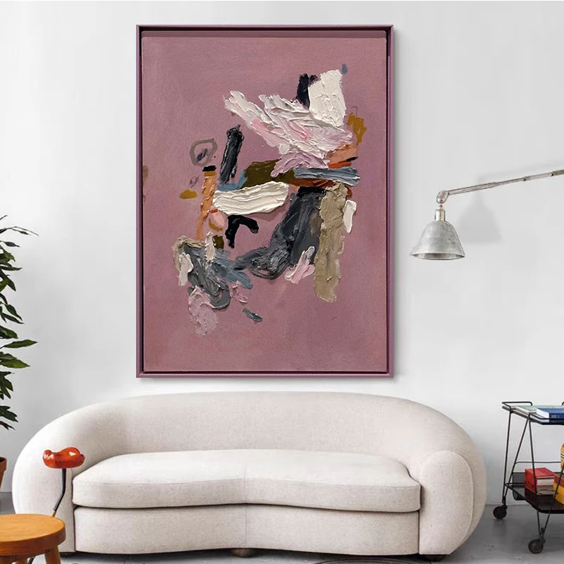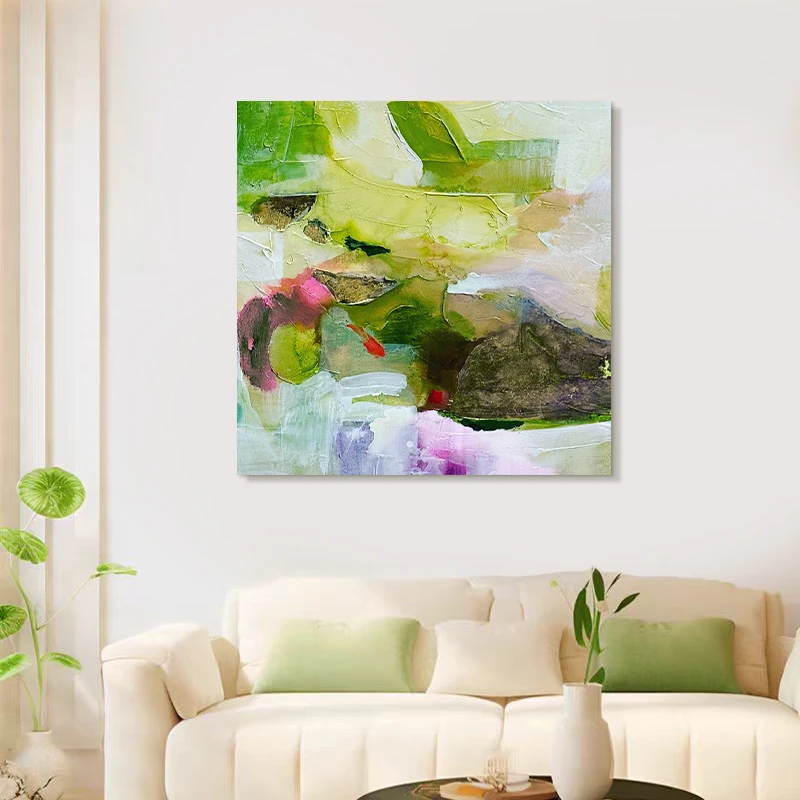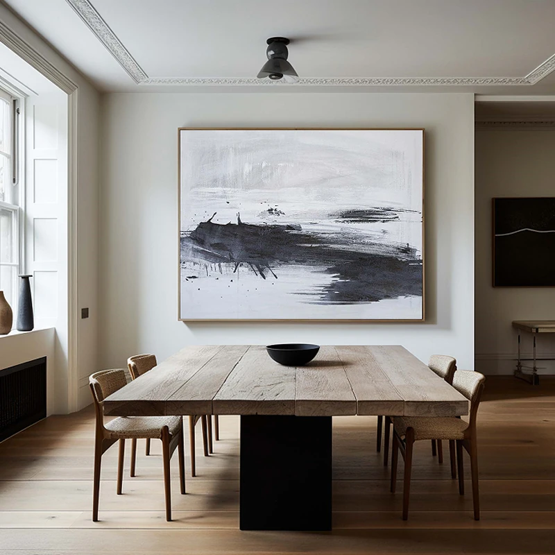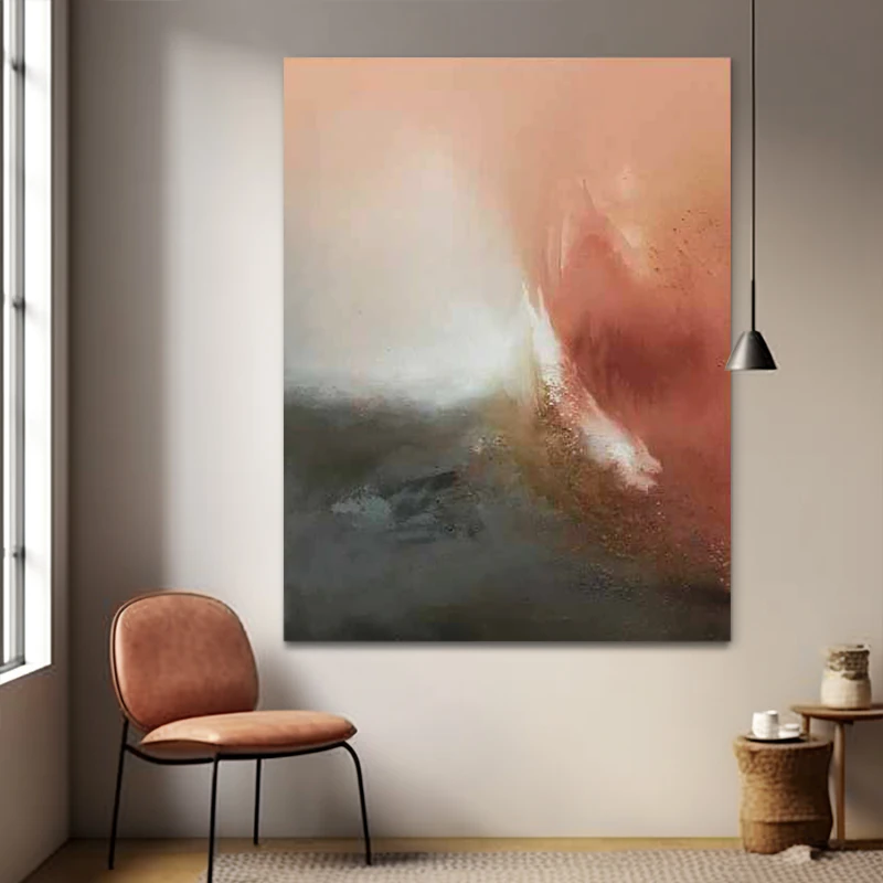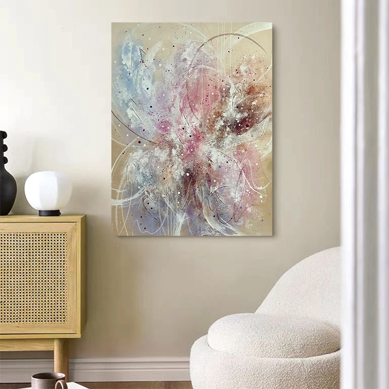 MUMOオリジナル手描き『紛華不染』侘び寂び風リビング装飾油絵|手作り抽象アートで、心を癒すダイニング空間を演出!