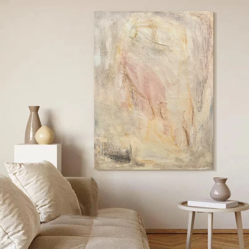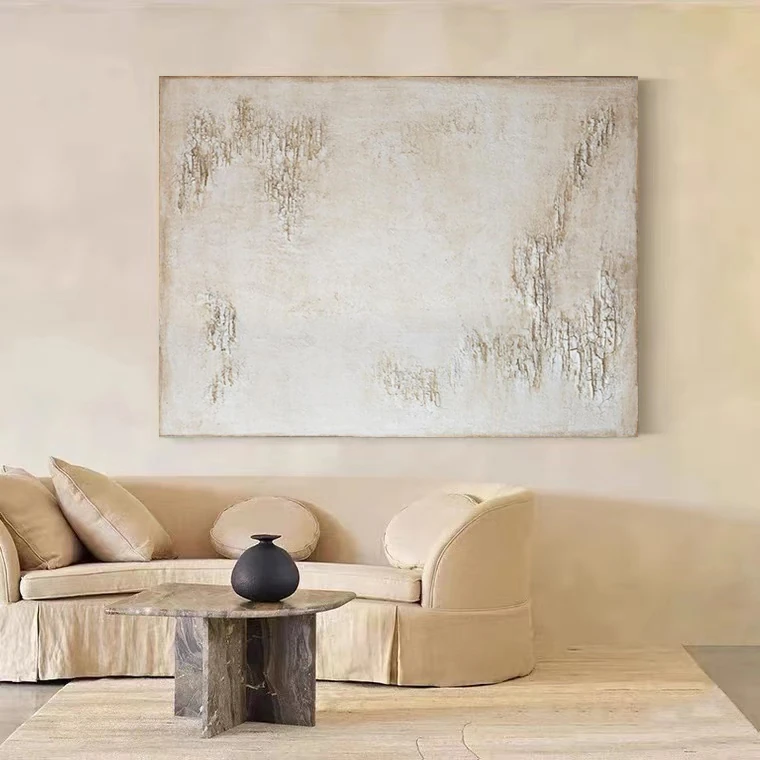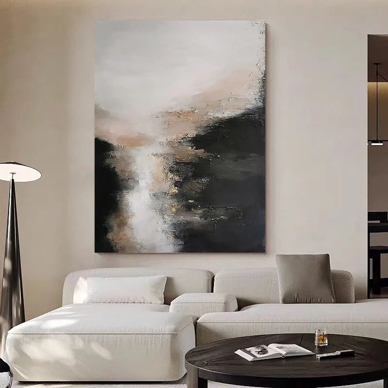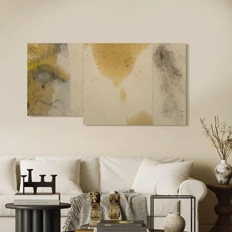 MUMOの手描き油絵《逸致》- 侘寂風のエレガントな壁掛けアート。玄関やリビングにぴったりの抽象的なデザインで、高級感溢れる空間を演出します。