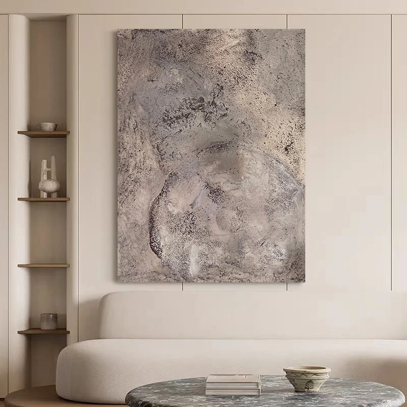 MUMO手描き油絵《落境》- 抽象立体テクスチャーの壁掛けアート。リビングや玄関を彩る侘寂スタイルの装飾画で、心を和ませる空間を演出します。