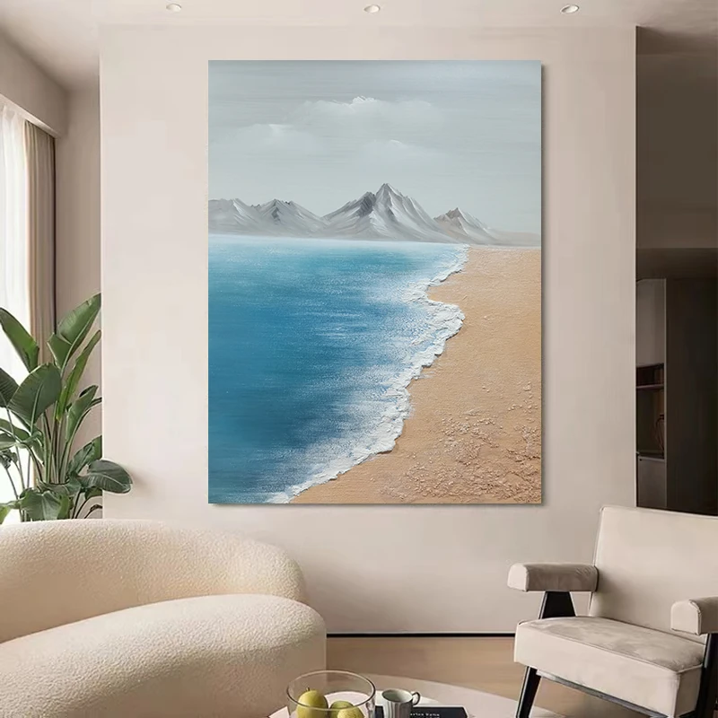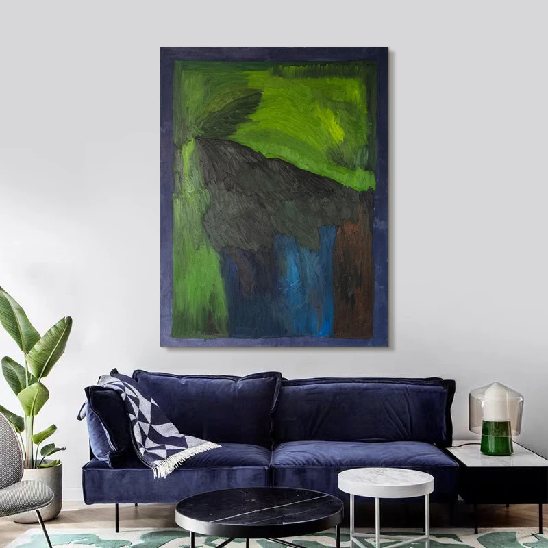 MUMOオリジナル手描き油絵『風吹く夏』現代ミニマリスト風リビングデコレーションアート・風景・玄関用絵画。洗練されたデザインでお部屋を明るく彩り、心地よい夏の風を感じさせる一枚です。