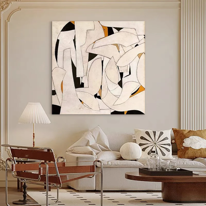MUMO.オリジナル手描き油絵「時のパズル」高級寝室装飾画・リビング抽象画・侘寂スタイルで特別な空間を演出!
