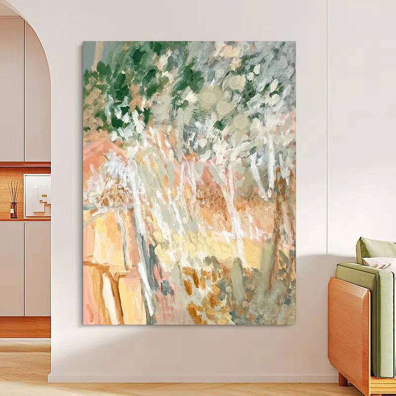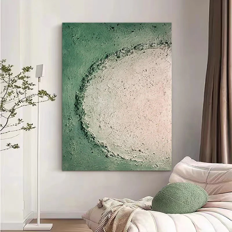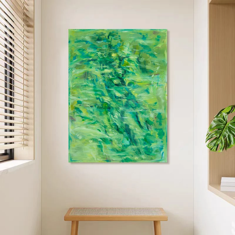 MUMOオリジナル手描き油絵『翠意盎然』〜侘寂風のリビング装飾画、洗練されたダイニング空間を演出する高級掛け画〜