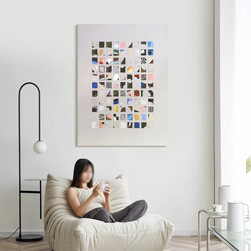 MUMO手描き油絵《不染》 – シンプルで洗練された玄関にぴったりの抽象アート。リビングやダイニングの装飾にも最適な美しいアート作品で、お部屋の雰囲気を一新します。