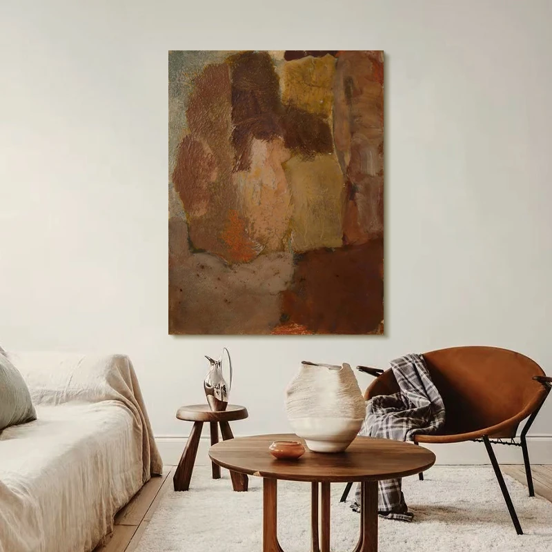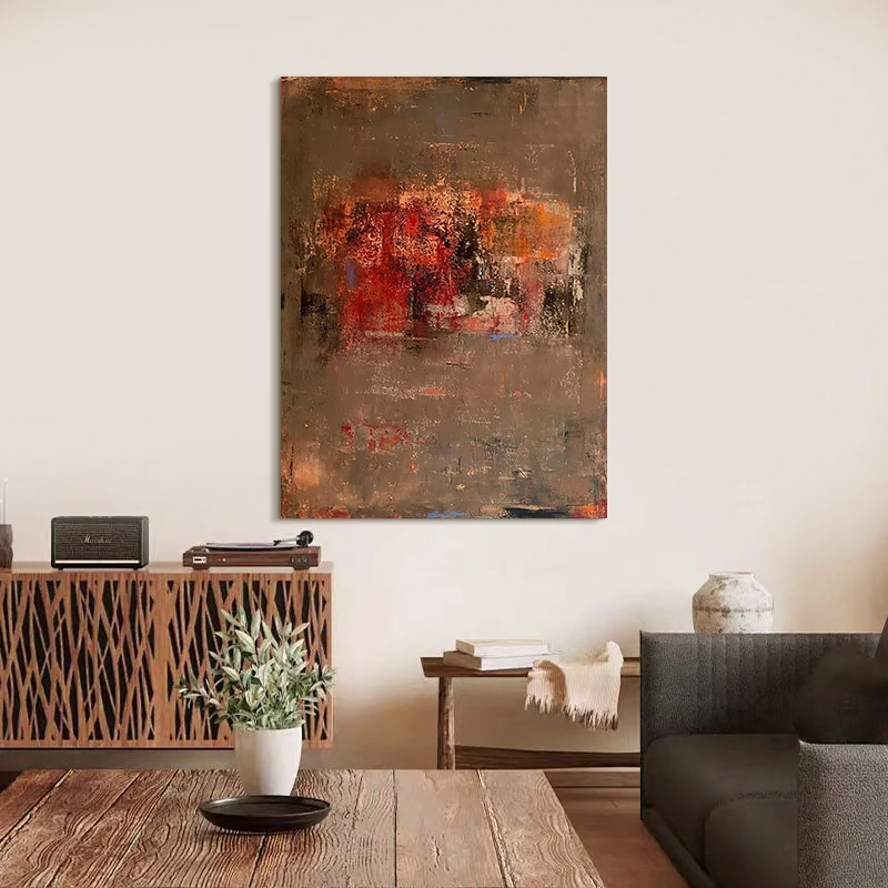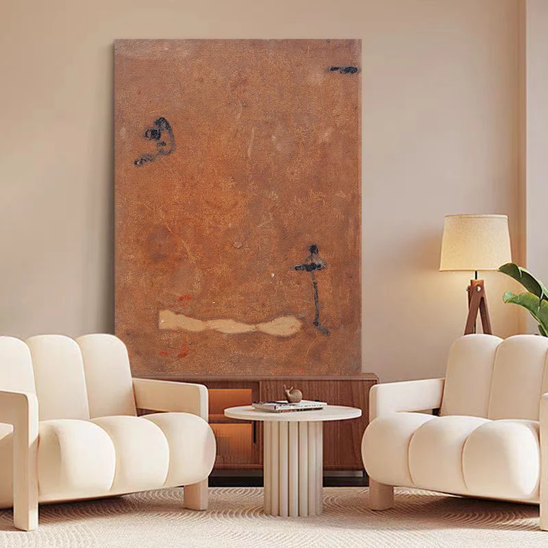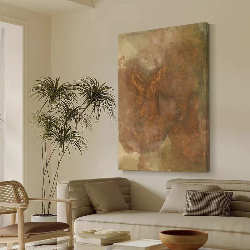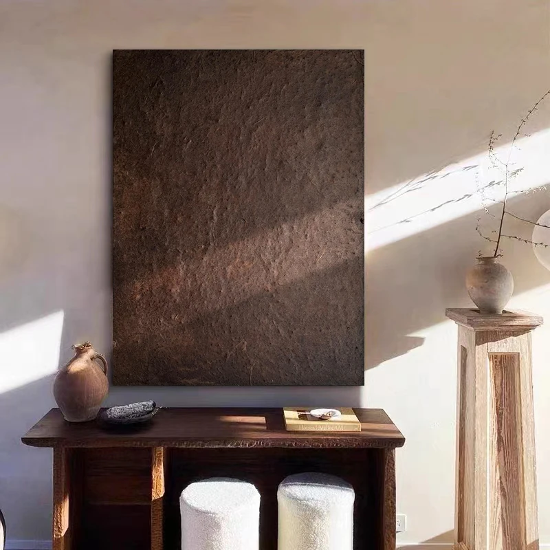 MUMO.オリジナル手描き「古韵」侘寂スタイルの玄関用抽象画、リビングの背景壁にぴったりの高級オイルペインティング。心を癒やすアートで、空間を格上げ!