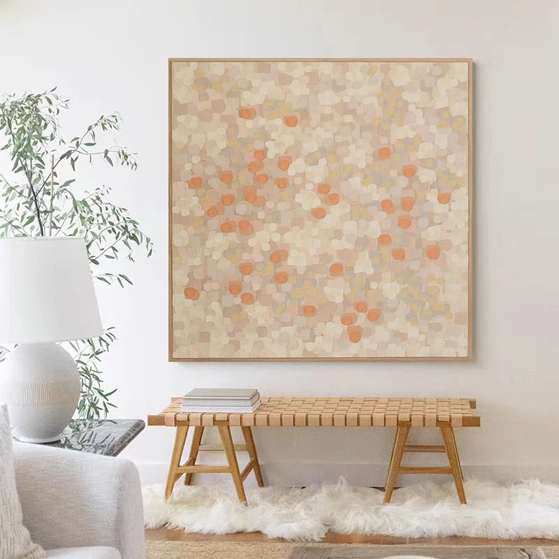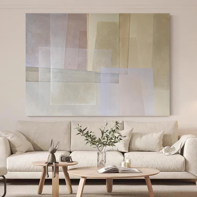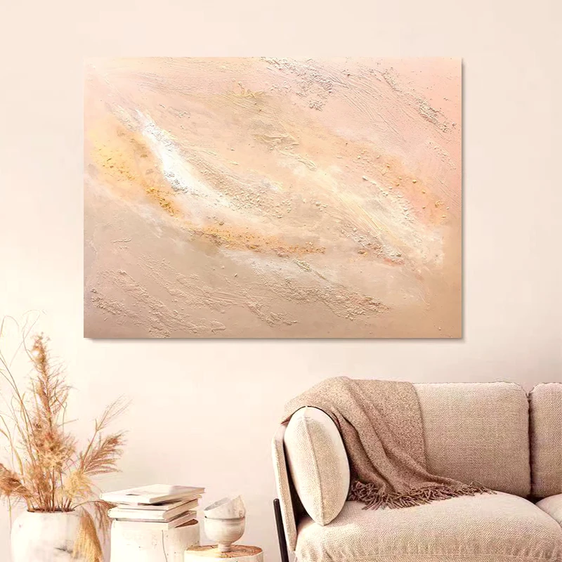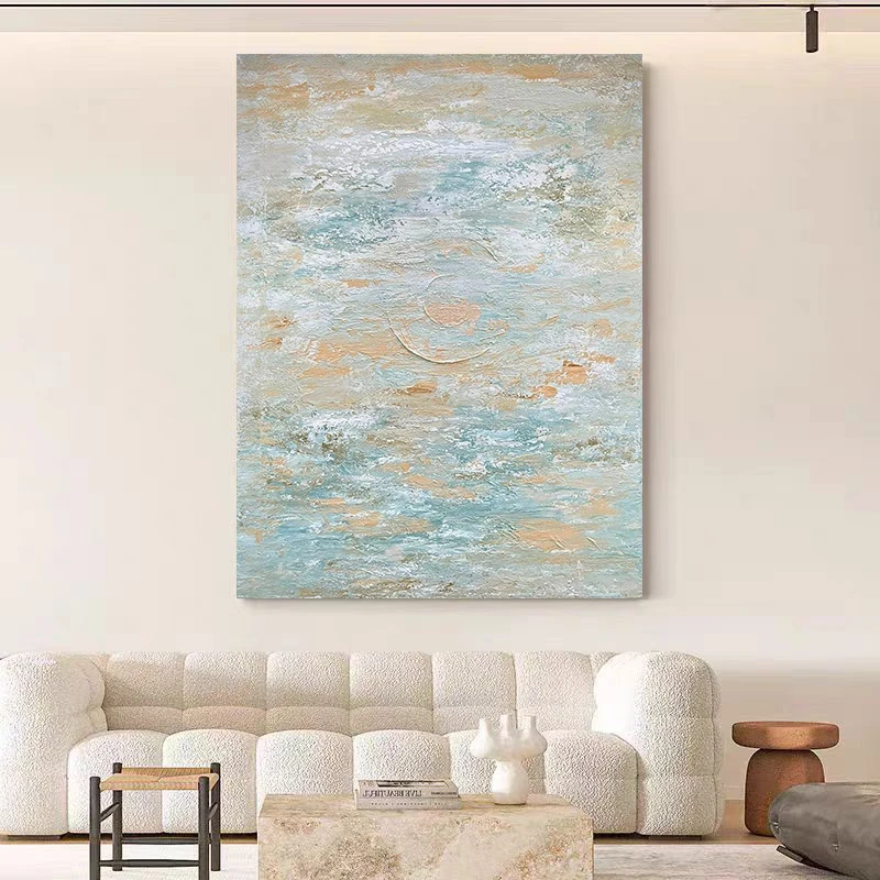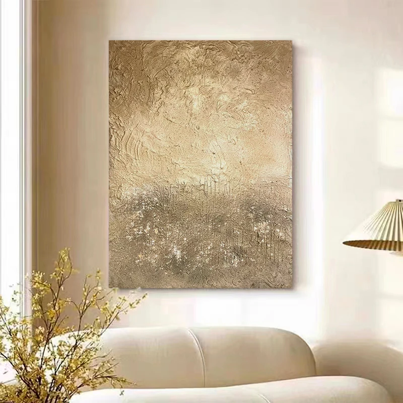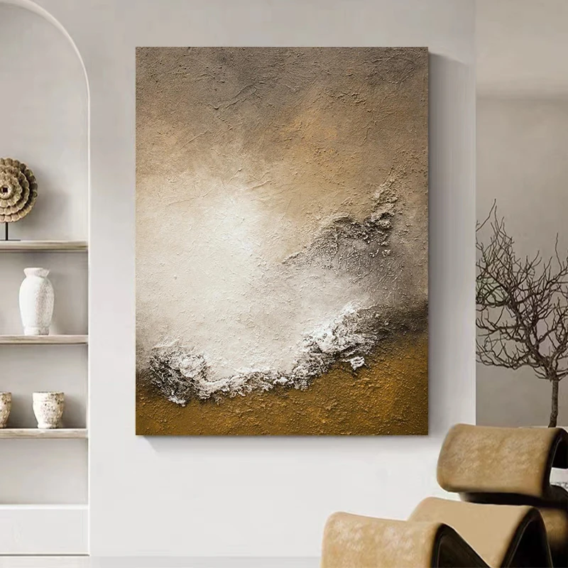 MUMO手描き油絵《悦然拾光》- 侘寂風の装飾アート壁画、リビングルームにぴったりなテクスチャー抽象画で、心を和ませる空間を演出します。