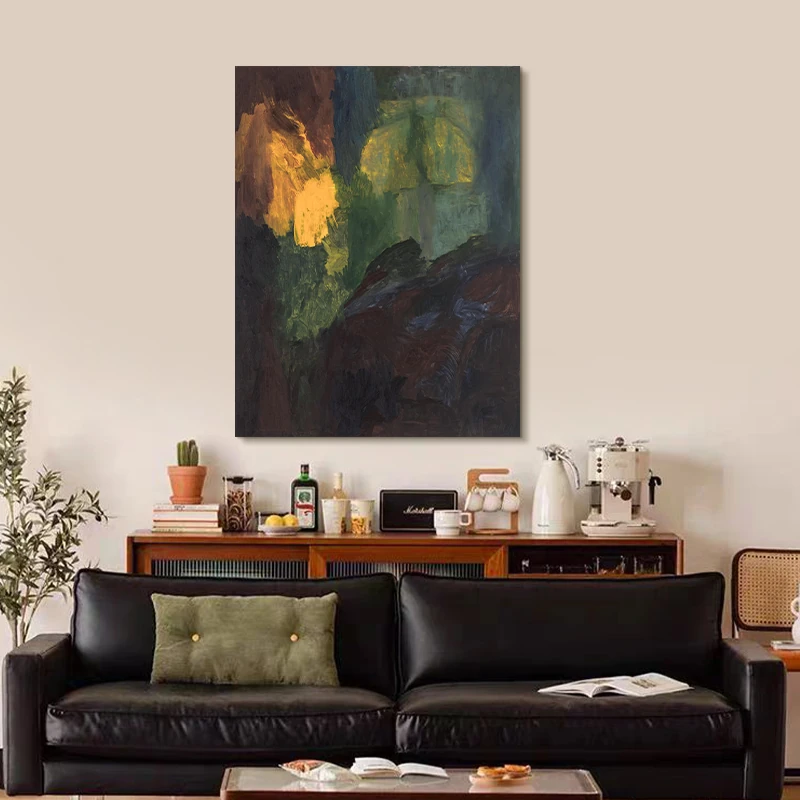 MUMO.オリジナル手描き『沈暮』わびさびスタイルの高級リビング装飾アート、レストランにぴったりな抽象油絵!心を癒すアートで、特別な空間を演出します。