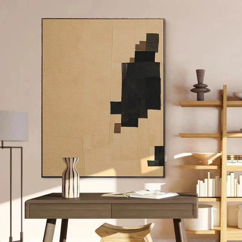 MUMO.オリジナル手描き油絵『宜世』リビングルームにぴったりのテクスチャーデコレーションアート、玄関にも合う手作り立体画、侘び寂びの美を感じる特別な一品。
