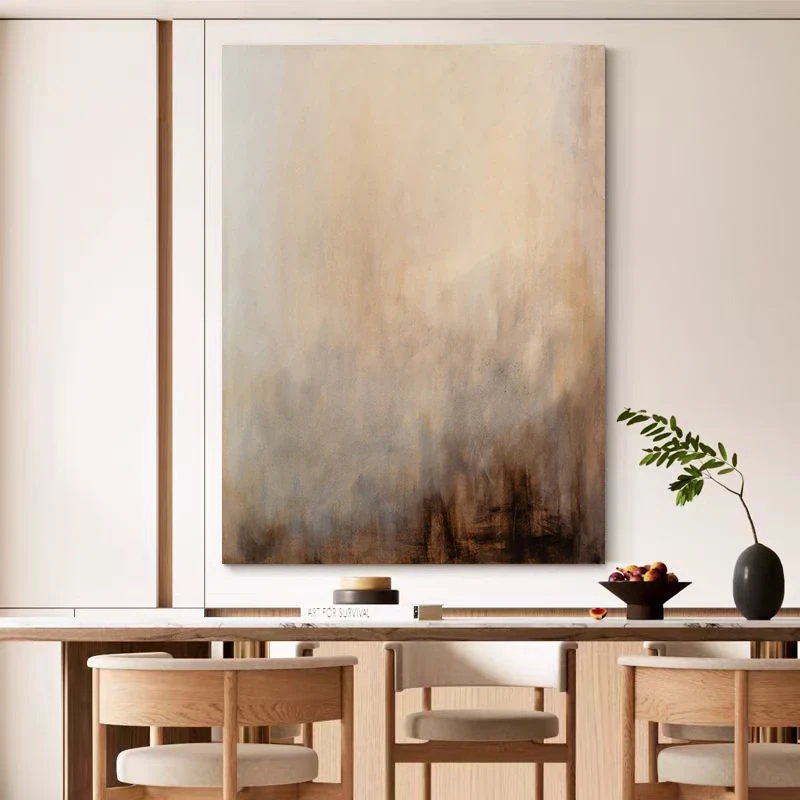 MUMO.オリジナル手描き《浮世清歓》侘び寂び風のレストラン抽象装飾掛け画、リビングにぴったりなテクスチャーオイルペイント!心を癒すアートで、あなたの空間を特別なものに。