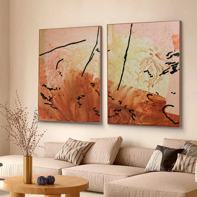 MUMO.オリジナル手描き「浅痕」抽象装飾油絵 - リビングルームの背景壁に最適なアート作品、玄関を華やかに彩るハンドメイド壁画!