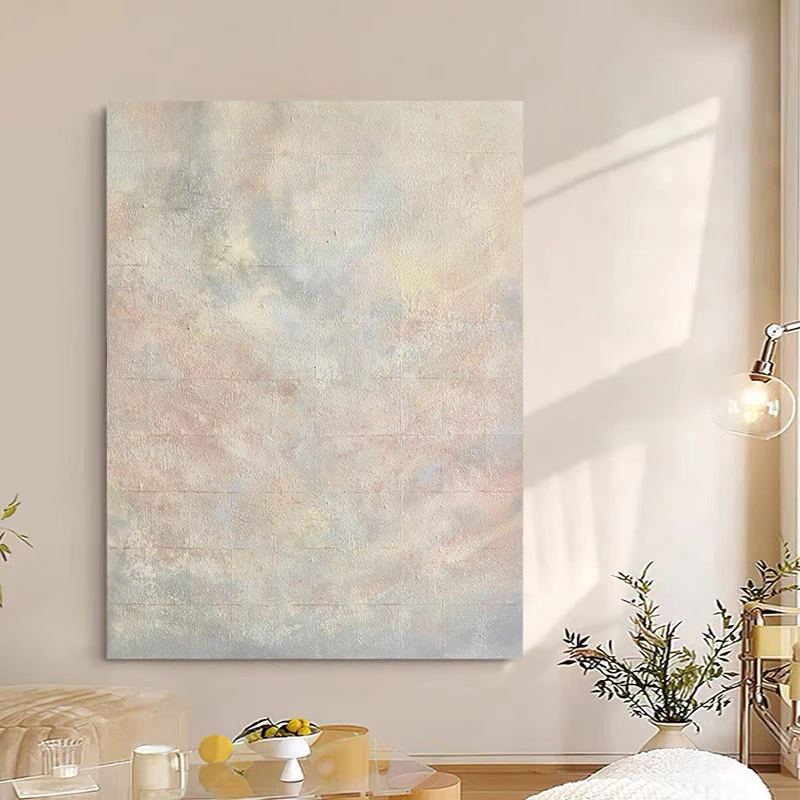 MUMOオリジナル手描き「霞光の輝き」侘寂風テクスチャーオイルペイント リビングルーム装飾壁画 玄関アートパネル - あなたの空間に心を癒す美しいアートを。