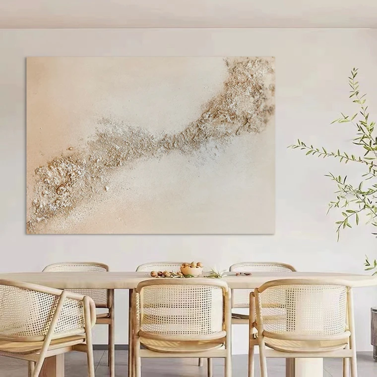 MUMO.手描き油絵『温言』モダンな侘寂スタイルの玄関用アート、リビングやダイニングにぴったりな抽象立体壁画で、空間に優雅さと深みをプラス!